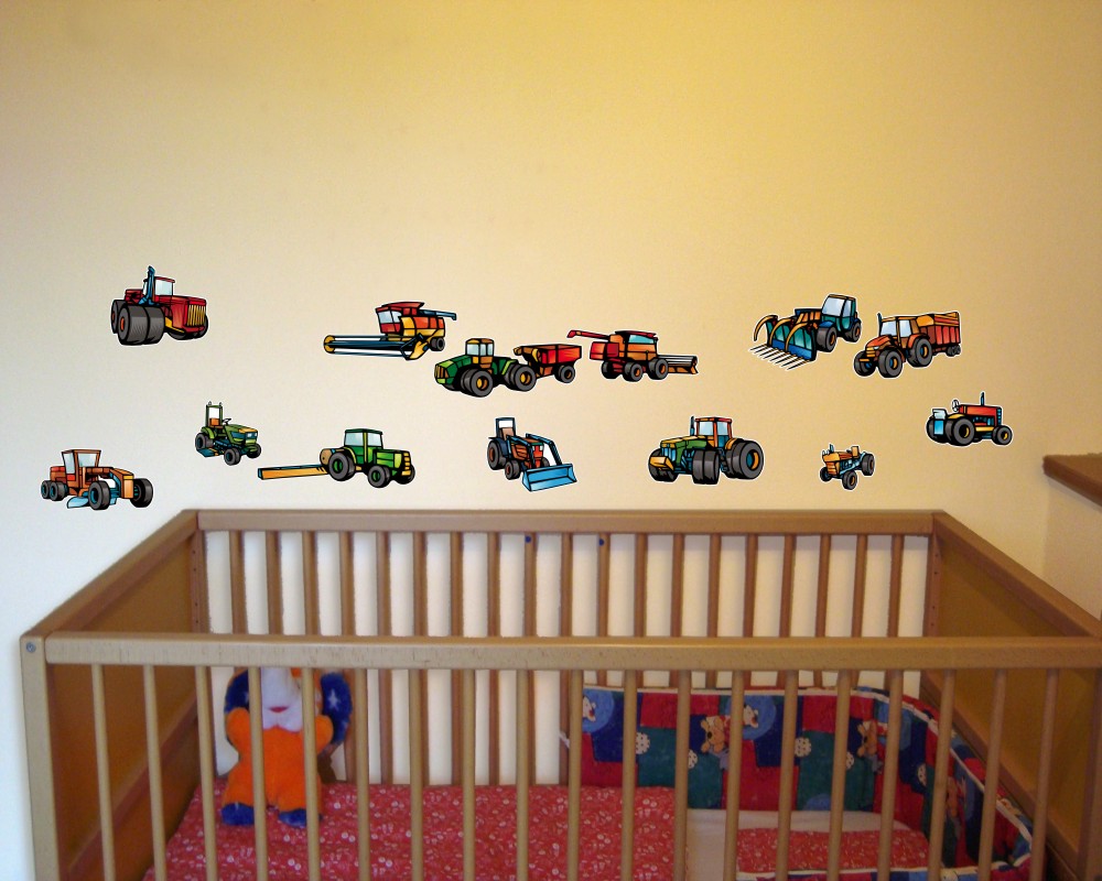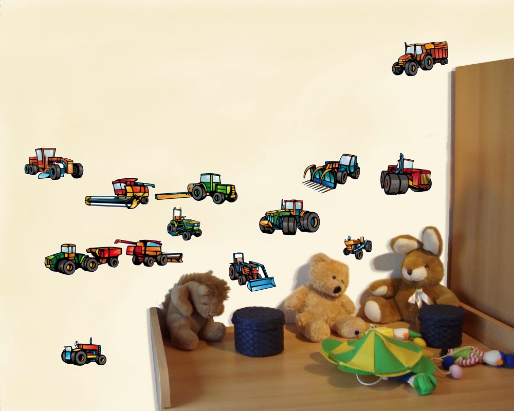 Mit dem 13 teiligen Traktor Wandtattoo Set ist das Kinderzimmer dekorieren in kürzester Zeit erledigt. Einfach an zubringen und trotzdem macht es Kindern eine riesen Freude. Das Set besteht aus 13 unterschiedlichen Traktoren, einige mit andere wiederum ohne Anhänger, alte und neue Modelle sind enthalten, genauso wie große und kleine.